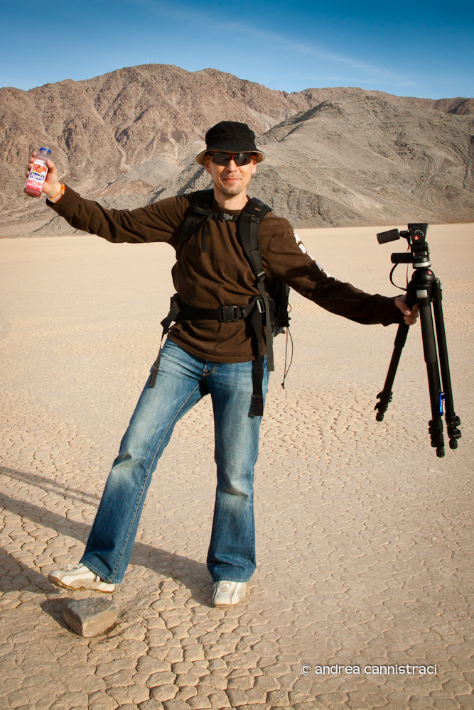 My dear friend Andrea send me few months ago a nice snapshot of myself at the Racetrack and that reminded me favorite topic about the power of photography to mess with your size perceived vs the real size. One of the most common reaction when presenting “Moving rocks” from the Racetrack was: “Wow, those are HUGE rocks! How they can move?” Well. It’s actually just a perspective trick when you use very wide angle lens and you get very close to you subject. With an aperture at f/13 and combination of wide angle I’ve got a pretty sharp background, but heeeey, that rock in front is enormous, right? 😉