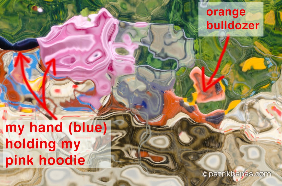 It’s just a simple reflection of the actually quite boring surroundings, reflected in this metallic siding of the building. Below you can see behind the scene shots and how the building looks like. And before you will scroll down – try to guess what is this big PINK spot? Answer is inside the article…
