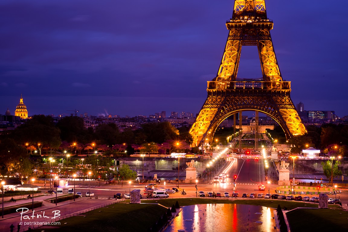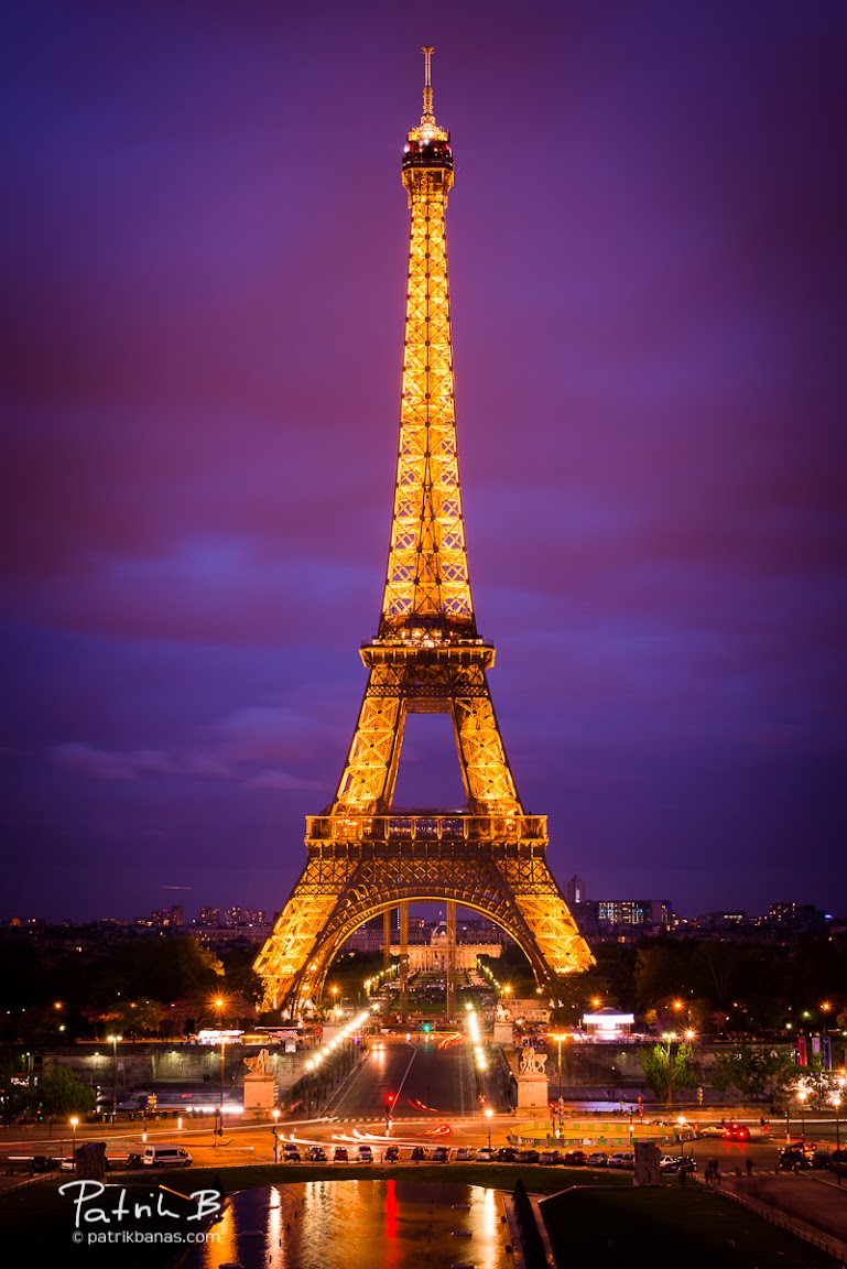 Enough teasing. Here it comes. The most classical Eiffel tower view, the most classical postcard shot. Something you HAVE to shot on your own, otherwise it doesn’t count and you were NOT in Paris 🙂 Well, mademoiselle Eiffel is very photogenic, no doubt about that. And her illuminated, curvy shape against a dusky, cloudy and colorful sky has no competition in Paris. So here I was. After playing enough with a carousel and flashes shots, I have finally arrived to Trocadero and I am fighting elbow to elbow with all other photographers and thousands (literally!) tourists to get the best available position. Keeping en eye (other one, which wasn’t glued to the viewfinder) on roaming individuals who had a tendency to kick to my tripod (yeeah, and this is not something you want at the end of your 20 sec exposure! 🙂