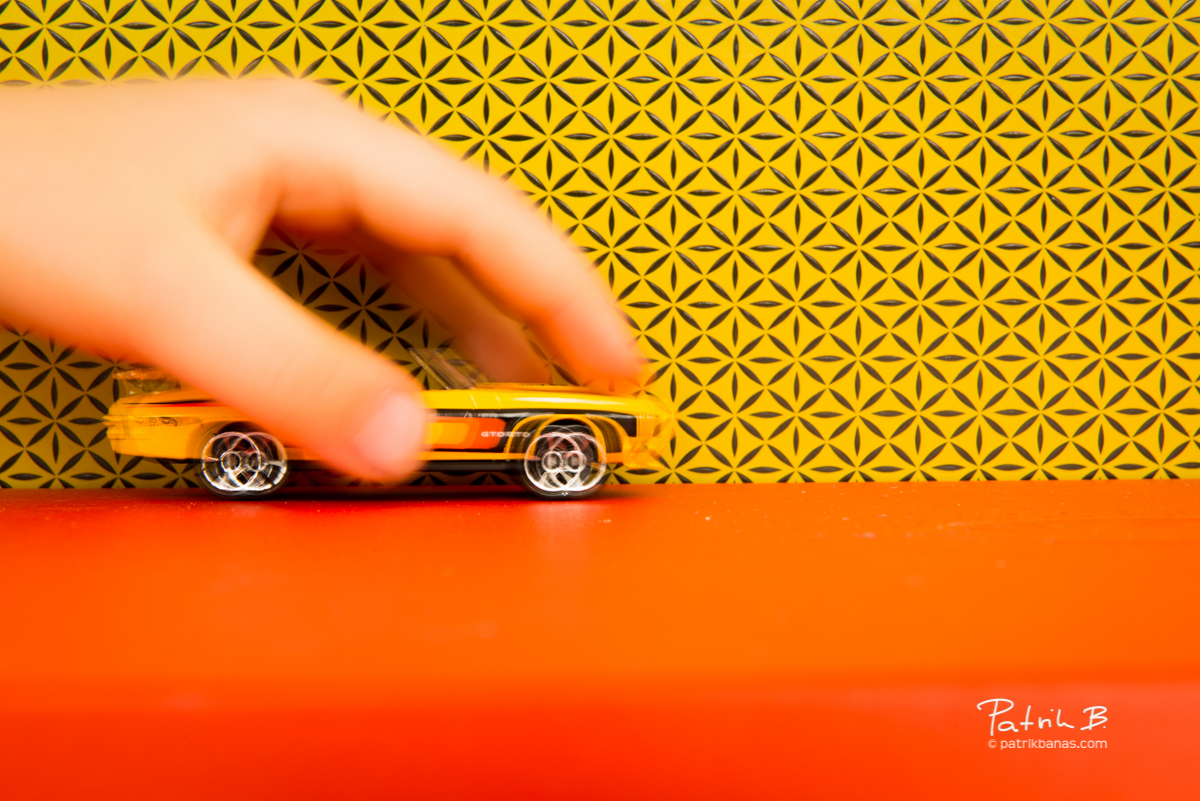 Nápad na tohto týždňovú žltú prišiel, keď som si užíval skvelú tmavú čokoládu a bonboniéra bola žltej farby s naozaj originálnym vzorom. Takže pozadie som mal vyriešené. Požičal som si jedno autíčko môjho syna (z tej nekonečnej krabice). Naaranžoval. Pridal pohyb. A aby som podtrhol veľkosť záberu, pridal som tzv. ľudský prvok (v tomto prípade vypomáhala moja krásna dcéra). Monika mi pomohla s prípravou… Proste rodinná spolupráca… Díky všetkým!