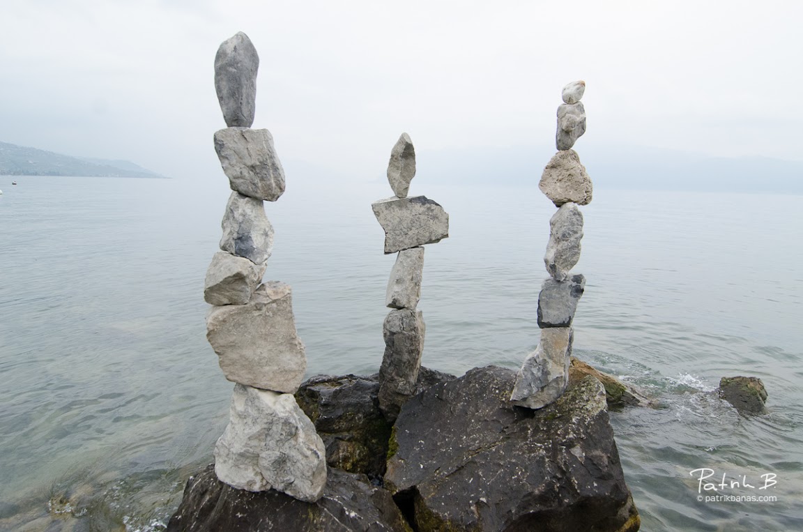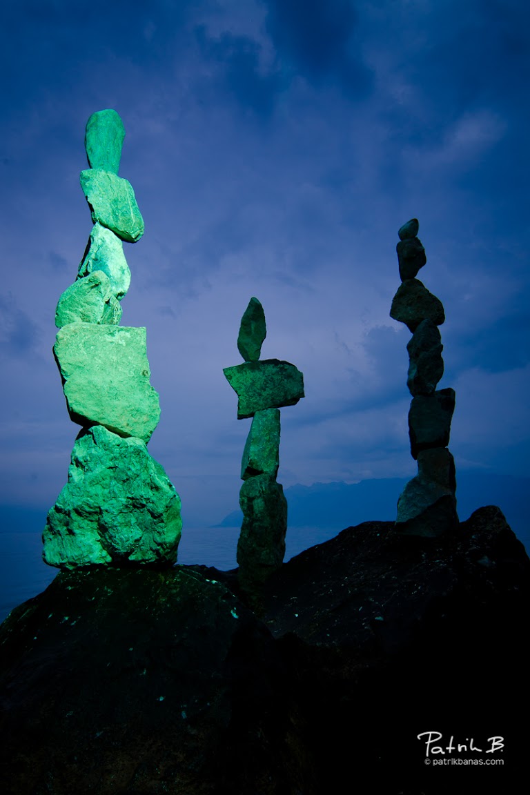 During my morning jogging around the Geneva lake I have met this interesting “Stone sculptures”. Somebody had fun! At the first sight i though that it is just some artistic exhibition with a help of really strong glue, but I was proven wrong! They were just… well stacked stones. So I have memorized the place and the same evening I was back, hoping it wasn’t ruined yet. Thankfully, Swiss are very disciplined and everybody appreciated the composition instead of ruing it. So I have tried several different angles (as seen in the previous post) but I was really mesmerized by the shot from the bottom against the beautiful cobalt blue dusk sky, which thanks to arriving storm got even more dynamic!