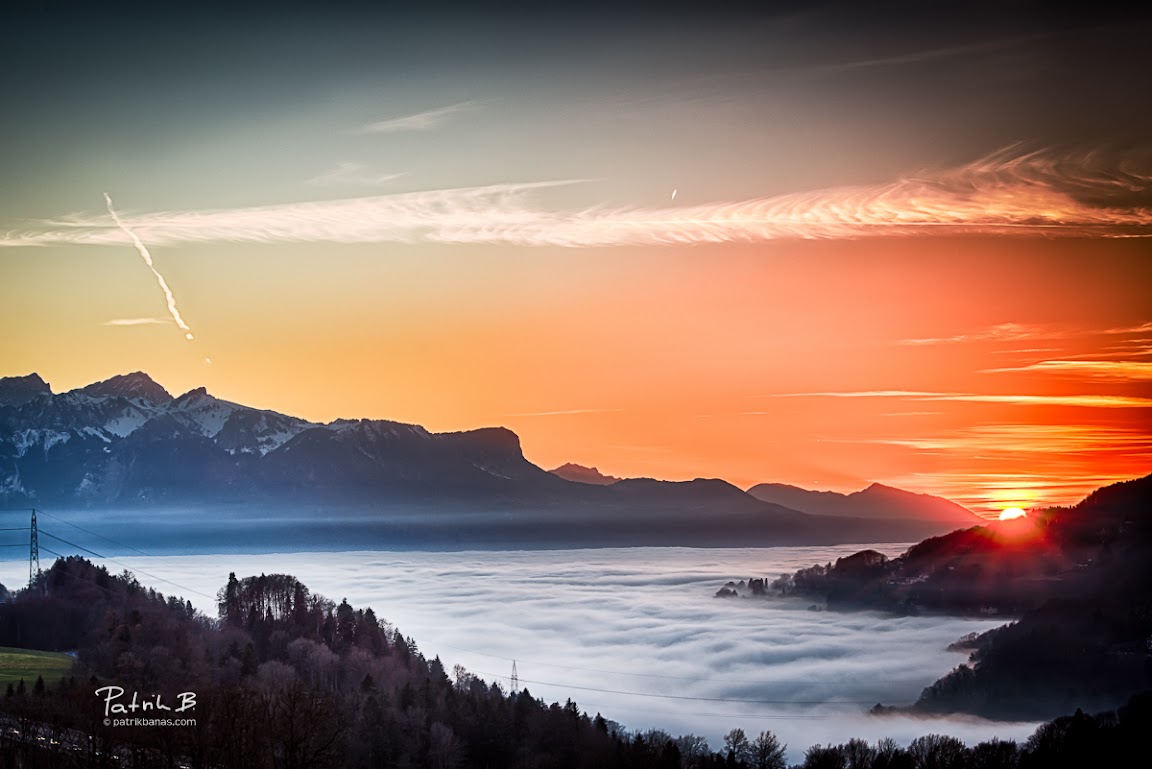 Dnes tu bol celý deň nádherný slnečný deň! Až podvečer som prišiel na to, ž to len u nás vo výške 807 metrov nad morom! Celá oblasť pod nami, ktorá bola už len 100 metrov nižšie strávila deň pod pekne zatiahnutou, zamračenou a hmlistou oblohou. Yupí 😉 Pekne tmavo okolo Ženevského jazera, čo?