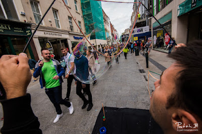 Did you met already those street artists who make these incredibly big bubbles? I met them today while walking through downtown in Dublin (very beautiful by the way!) and my first immediate reaction was to put my camera with wide angle INTO that bubble. To see the city as seen from inside the bubble. Pretty cool view actually, what you think? 😉